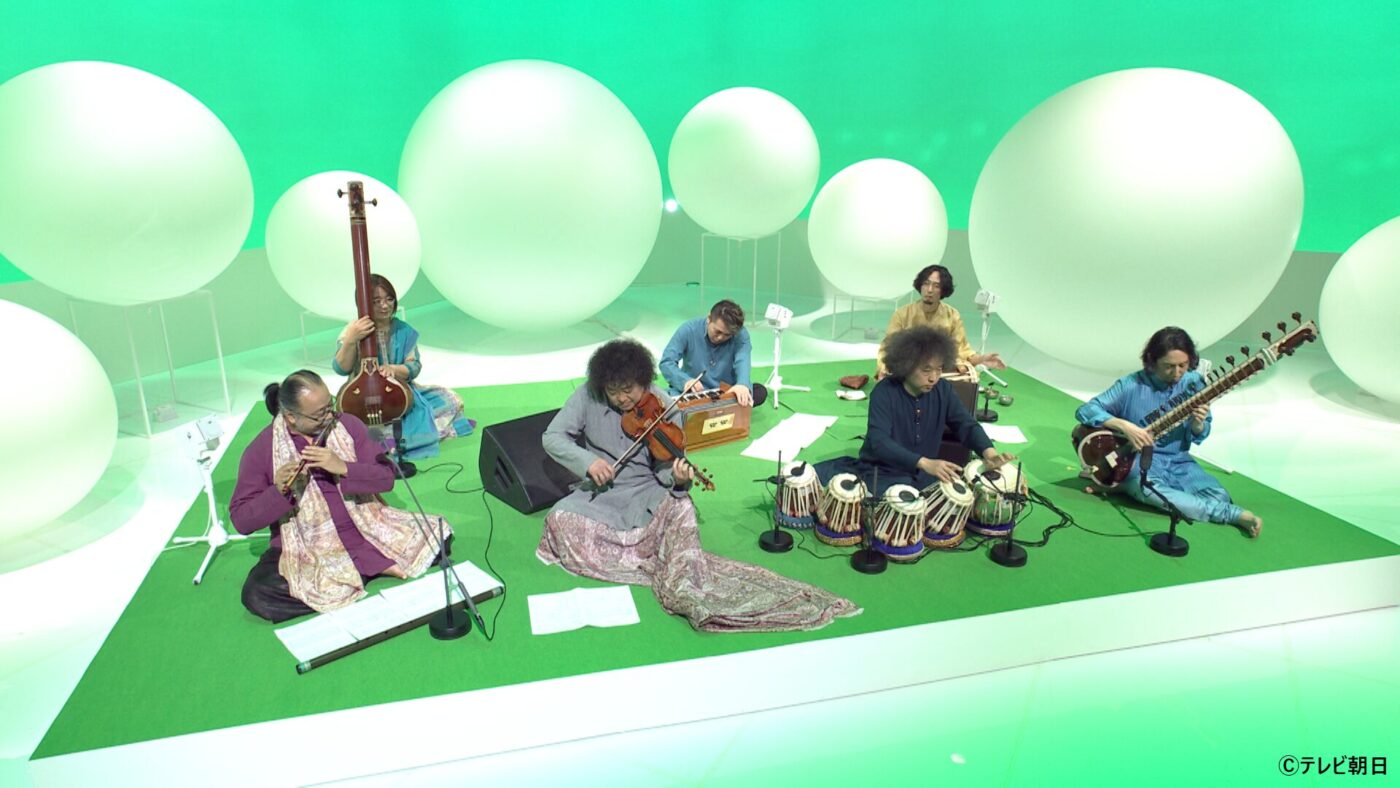 編成は葉加瀬太郎(ヴァイオリン)、寺原太郎(バーンスリー)、武藤景介(シタール)、カネコテツヤ(パカーワジ)、伊賀拓郎(ハルモニウム)、寺原百合子(タンプーラ)、ユザーン(タブラ)です。ヴァイオリンも、インド古典音楽の世界ではよく使われる楽器なんですよ。